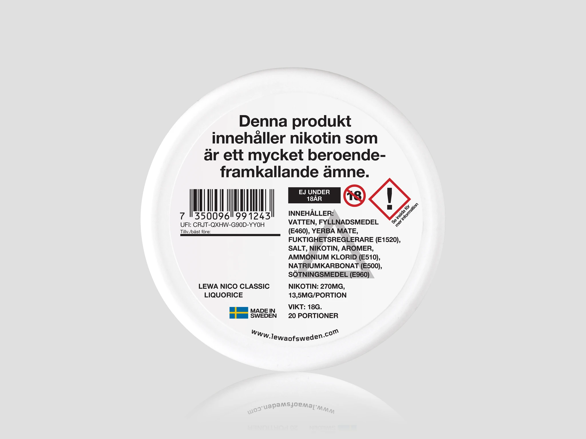 ⚠️ Produkten innehåller nikotin, ett mycket beroendeframkallande ämne. Endast avsedd för vuxna användare. 18 årsgräns.