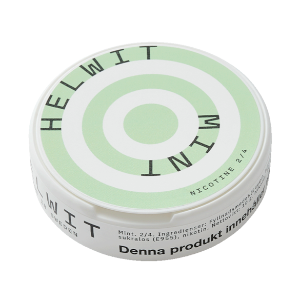 Helwit Mint är ett tobaksfritt vitt snus i slim‑format med en ren och uppfriskande mintsmak. Prillorna vilar bekvämt under läppen och produkten levereras i dosor om 20 portioner med nikotinhalt på cirka 3,5 mg per portion (~7 mg/g).