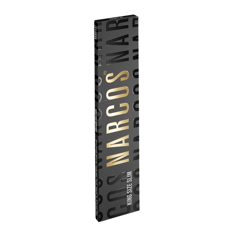 Narcos Slim rolling papers i King Size Slim-format – ultratunna papper med naturligt gummi och långsam brinntid.