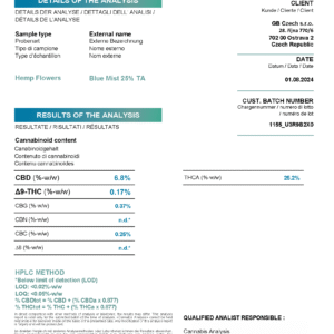 Med en imponerande THCA-halt på 21% levererar Blue Mist en balanserad upplevelse som passar perfekt för dig som söker lugn, fokus och en mild känsla av avslappning. Resultatet är en komplex och minnesvärd aromprofil som tilltalar både nybörjare och erfarna samlare.